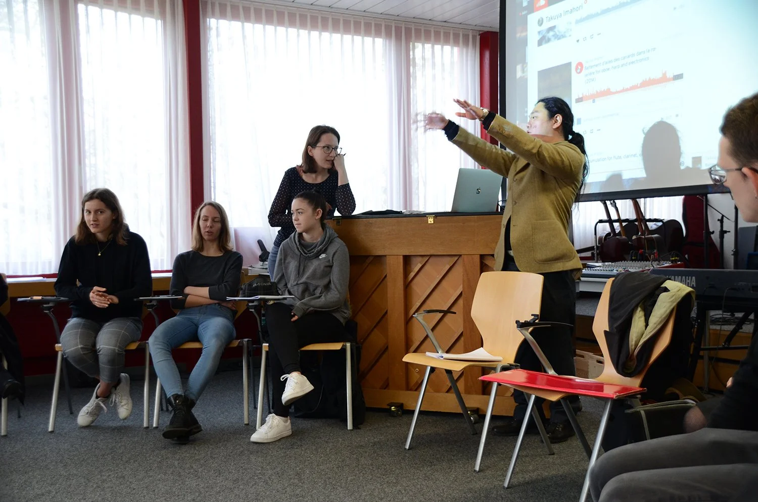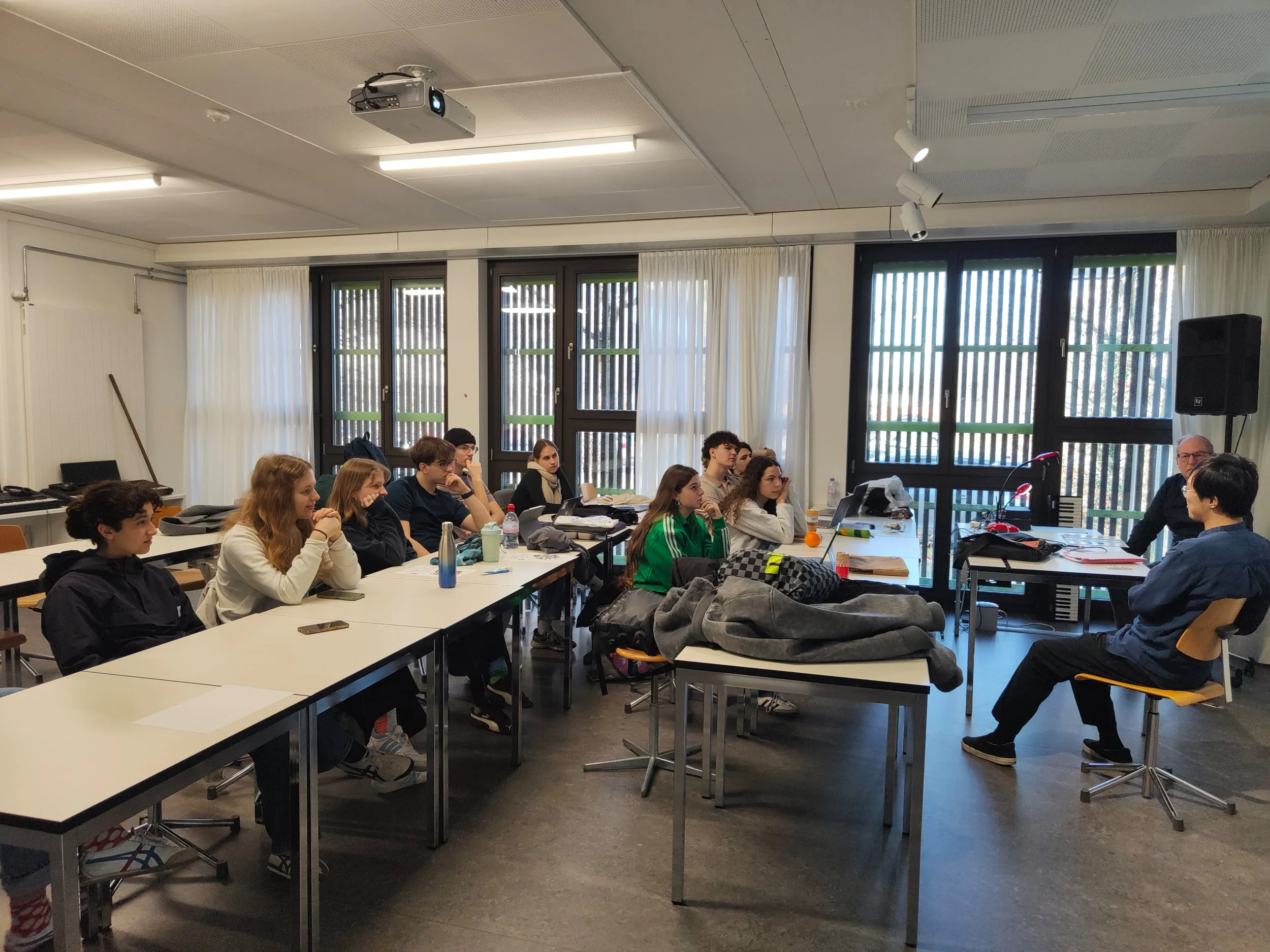 Natürlich ist es ausserordentlich schade, wenn die Jugendlichen den Uraufführungen der behandelten Kompositionen nicht live beiwohnen können; gerade in PandemieZeiten wären ein Konzertbesuch und ein direkter Kontakt zu den ausführenden Musikerinnen und Musikerinnen umso wertvoller gewesen. Leider mussten die Schüler*innen die Konzerte via Stream und/oder Tonaufnahmen verfolgen – aber immerhin! Was hingegen stattfinden konnte, waren die Besuche der Komponisten bei den Schulklassen vor Ort. Einige hatten schon vor ihrer Anreise mit «ihren» Klassen Kontakt, beispielsweise über Microsoft Teams oder Zoom. Doch die allermeisten konnten auch während des Festivals in Basel einen Besuch an der Schule unterbringen. Die Rückmeldungen der Lehrpersonen und auch der Komponisten fielen durchwegs positiv aus: Gerade in Zeiten mit extrem reduziertem direktem persönlichen Kontakt wurden diese Live-Begegnungen, die Gespräche und Fragerunden besonders geschätzt. Es ist eindeutig, dass bei den Jugendlichen dadurch noch verstärkt eine Identifikation mit «ihrem» Komponisten (und dadurch auch mit Neuer Musik im Allgemeinen) entsteht, was seit der ersten Ausgabe der Basel Composition Competition ein Hauptanliegen der Initianten gewesen ist.